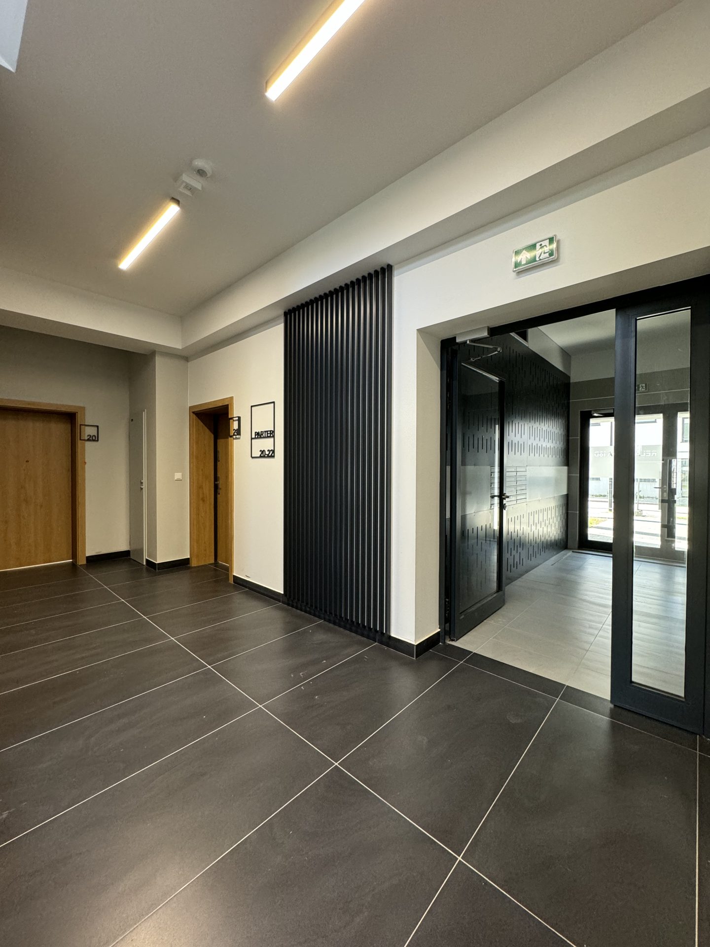 Budynek 16 stanowi odrębną część przedsięwzięcia – realizowaną przez naszą spółkę Movimento – i pełni funkcję mieszaną: mieszkaniową oraz usługową. W parterze przewidziano lokale usługowe (7 lokali), a całość ma 4 kondygnacje nadziemne + 1 podziemną. To tutaj koncentrują się udogodnienia „na co dzień”, dzięki czemu mieszkańcy mają usługi na wyciągnięcie ręki.